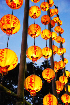 夜半星斗掛穹蒼,簷前燈篙渡緣靈, 遠空孤蟾清皎月,觀空境寂神自明。