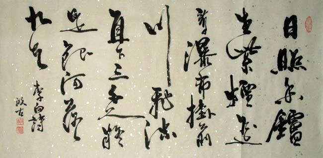 日照香爐生紫煙,遙看瀑布掛前川。 飛流直下三千尺,疑是銀河落九天。