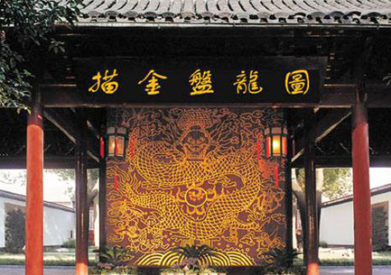 在瞻園的觀魚亭入口處右邊牆壁上,有一巨大虎字碑,碑上的虎字乃一筆揮就,字是虎,形也似虎,被譽為瞻園的鎮園之寶。傳說為了讓「未有寧居」的開國元勛中山王徐達,居有定所永世安康,朱元璋在贈送瞻園的同時還送了鎮宅之寶,就是明朝德高道人一筆揮毫的「虎」字畫。此「虎」字威嚴霸氣,具吉祥蘊含有「富甲天下」四個字。當年為乾隆所看中,原想帶走,可惜它鑲嵌在牆中,恐會破壞這裡的風水,於是乾隆讓人拓下「虎」字,張掛在宮中。百姓雖無緣一睹「虎」字風采,但製作虎頭帽、虎頭靴為孩子避邪納福,作為傳世之風。