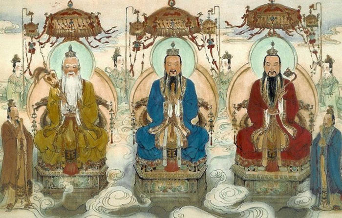 三清的名稱最早始見於南梁陶弘景所撰的《真靈位業圖》。《道藏太平部‧三洞珠囊》卷七引《老君聖迹》云:「此即玉清境,元始天尊位,在三十五天之上也。此即上清境,太上大道君(靈寶天尊)位,在三十四天之上也。太清境太極目,即太上老君位,在三十三天之上也。」三位天尊統稱「三清道祖」,是道教最高之神,並各說經十二部,分為「洞真、洞玄、洞神」合稱三十六部尊經,傳於後世廣渡群迷。