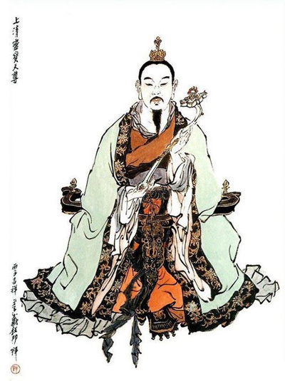 「靈寶天尊」原稱「上清高聖太上玉晨元皇大道君」。齊梁高道陶弘景編定的《真靈位業圖》列其在第二神階之中位,僅次於第一神階中位之元始天尊。唐代時曾稱爲「太上大道君」,宋代起才稱爲「靈寶天尊」或「靈寶君」。也是《封神榜》中為人所熟悉的「通天教主」。
