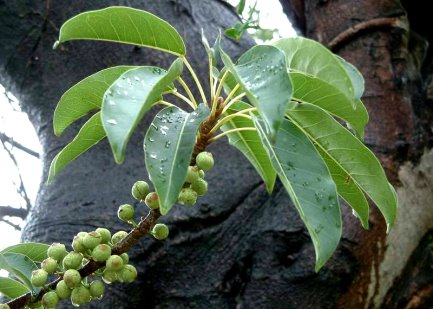 雀榕,桑科(Moraceae)榕屬(Ficus)。 別名:大葉榕(Ficus caulocarpa)、赤榕、山榕、 紅肉榕、鳥榕、鳥屎榕。 原產地中國南部、海南、琉球、香港和日本南部等地。為落葉大喬木(每年落葉2-3次),植株高度可達25公尺。莖幹嫩枝紅色,樹皮暗褐色,枝幹上也有氣根,有些雀榕樹種會發育成支柱根。