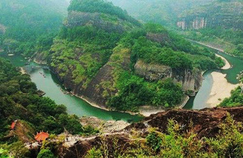 九曲溪是中國最美的溪流。無數的文人墨客曾在此留下痕跡,但流傳最廣、最為有名的,要屬朱熹作的《九曲棹歌》。九曲溪發源於武夷山脈的主峰「黃崗山」的西南,繞了九曲十八彎,到武夷宮前匯入崇陽溪,全長約60公里。而從星村至武夷宮,這段為名震遐邇的九曲溪,不過10公里長。峰迴水轉,如在畫中,武夷山的秀麗山峰逐一呈現。每轉過一道灣,岩壁上都有《九曲棹歌》的摩崖石刻,古意悠悠。(棹,音ㄓㄨㄛ)