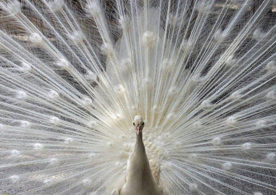 | 白孔雀全身潔白無瑕 是印度孔雀的變異種 |