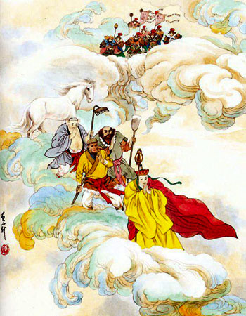 元明之際,中國文學的趨向,已由漢文、唐詩、宋詞、元曲的演變,到了明代,遂流行語體小說。自元代羅貫中著《三國演義》後,關羽、諸葛亮等成為聰明正直的天神。繼之又有《西遊記》與《封神榜》的出現。從此道教的天、人、神三種關係的觀念,普遍傳佈民間。《西遊記》以唐代佛教高僧玄奘法師為主的「唐三藏西天取經」的經過,襯托道家修行煉丹成道的宗旨。