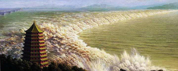 | 錢塘江大潮,波瀾壯闊的氣勢。 |