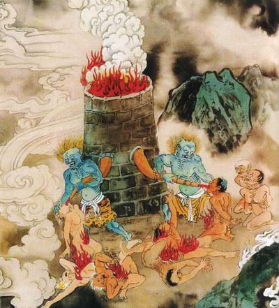 古代東方的印度和西方的西亞,早在公元前1800年古波斯的拜火教有這樣的描述:「末日審判是有一個大火坑,好人在那裡被牛奶和蜂蜜澆灌,而壞人則被融化的金屬溶液澆灌。」這是東西方地獄觀念的共同起源,研究古波斯宗教的學者也持此觀點。