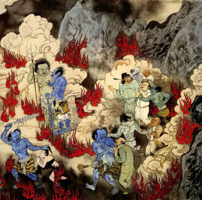 中國民間信仰,受到佛道教的影響,有十殿閻羅王之說。此說源於唐代,相傳玉皇大帝冊封閻羅王,由閻羅王統率地獄和五嶽衛兵。閻羅王更分為十殿,十殿各有其主和名號,稱地府十王,統稱「十殿閻羅王」,而十殿閻羅王及其一切部眾,都受佛教幽冥教主地藏菩薩或者是道教東嶽大帝的管轄。由於閻羅王的傳說與中國本土宗教道教的信仰相互影響,深具漢化色彩的閻羅王觀念,而一般人也認為陰間是不信因果輪迴的人,所受懲罰的永恆歸宿。
