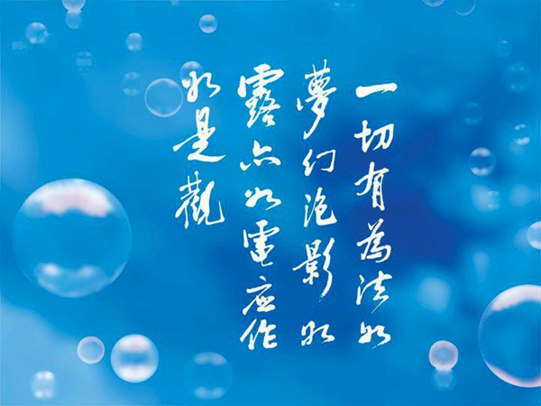 《金剛經》最後的四句偈,講一切有為法如夢幻一樣,夢醒了夢境就消失了;世間的一切事,如泡沫、如影子,是幻影;像早晨的露水,陽光出來一照就沒有了;也像閃電一樣,剎那間閃過就沒有了,因此不要執著,此心不住。佛說應該這樣去認識清楚。